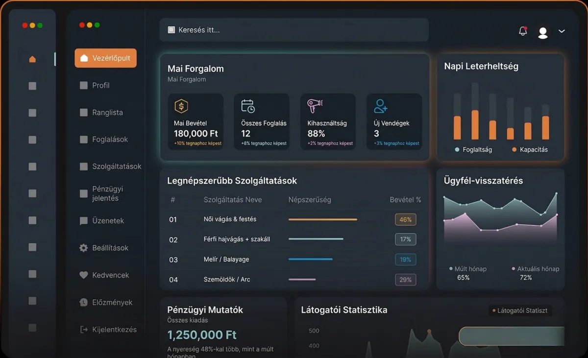 Kezeld az időpontokat, vendégeket és foglalásokat egyetlen rendszerben.
